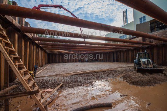 Комплекс работ по устройству шпунтового ограждения стартового котлована с применением вибропогружения и шпунта Ларсена