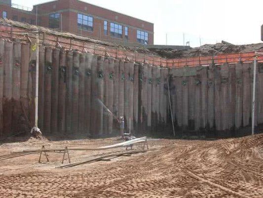 Для устройства временных ограждений применяются шпунтовые сваи из металла: они выдерживают до 20 циклов использования.